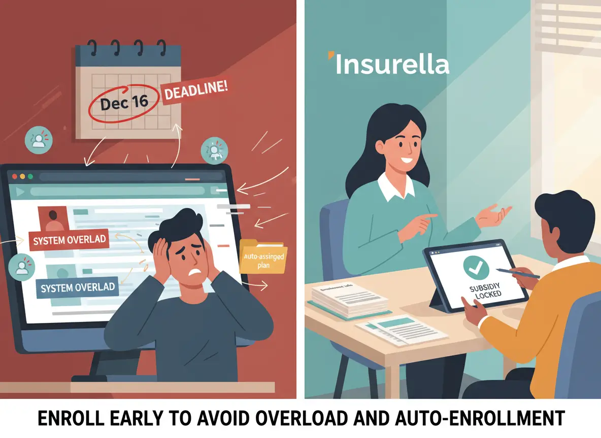 Uno de los problemas más comunes que enfrentamos es que muchas familias pierden acceso a importantes ahorros por haber esperado hasta después del 15 de diciembre. En ese punto, el sistema ya pudo haberles asignado automáticamente un plan, y aunque aún hay posibilidad de corregir la información e ingresar a un plan con mejores opciones, el proceso se vuelve más complejo y el nuevo plan de cobertura no sería activado como regularmente se espera en enero, sino hasta febrero. En un mes pueden pasar muchas cosas, ¡la integridad de tu salud no merece esperar!